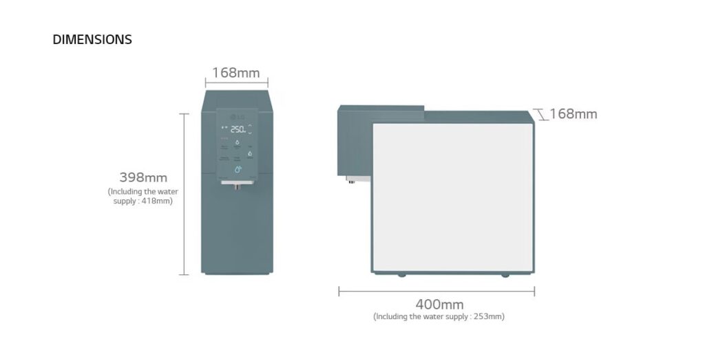 Dedikasi kami terhadap kecemerlangan dipadankan dengan tumpuan kami terhadap kepuasan pelanggan. Kami berbangga kerana menawarkan produk yang menggabungkan fungsi dengan reka bentuk moden yang anggun untuk dimuatkan dengan lancar ke dalam mana-mana rumah. Sila hubungi kami jika anda ingin mengetahui lebih lanjut tentang LG Self-Service Tankless Water Purifier.